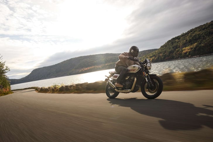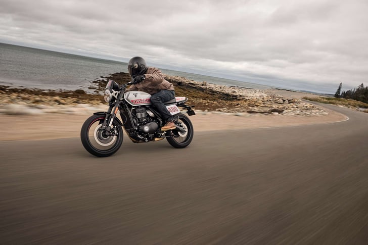 Stripped-back flat track attitude meets unmistakable design. Ride the dominant style and bold presence of the Tracker 400.