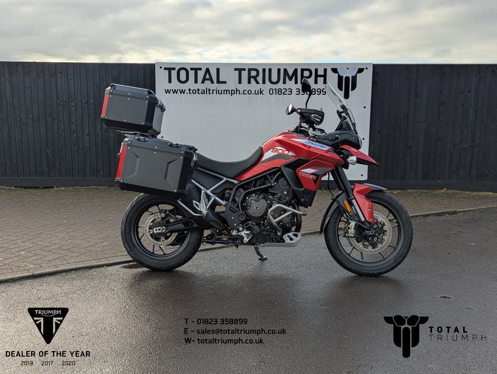 This lovely Tiger 900 GT Pro is one that we have always supplied and cared for. Fitted with all the usual top end features and beneiftting from Black 3 Box Luggage, Lower Engine Bars, Recent Tyres, Major 12k Service completed in July 2025, Pyramid Hugger.